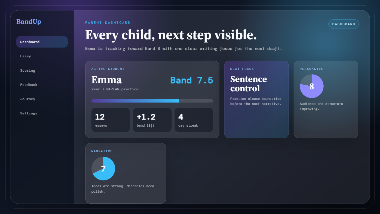Children are profiles under a parent account, so coaching can stay guided and age-appropriate.
